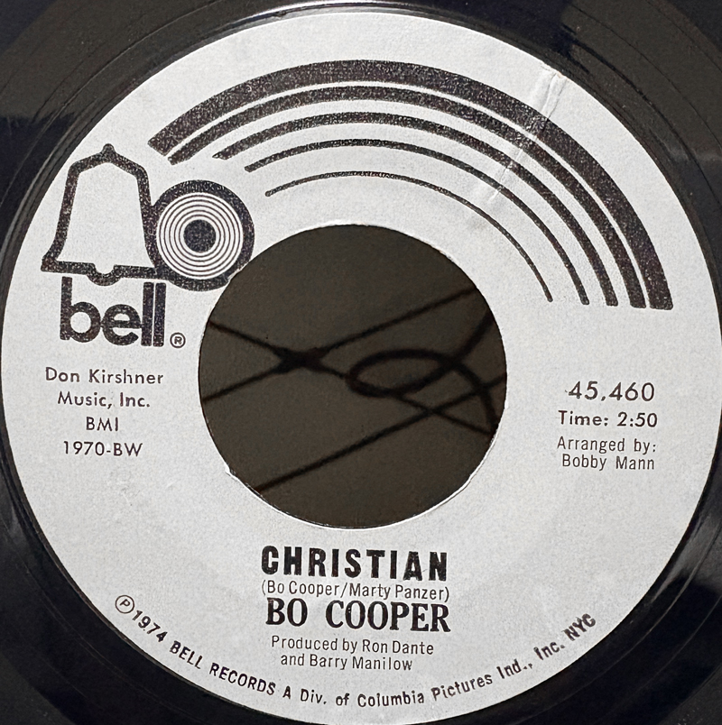 Bo Cooper7"オンリーリリース、'70s型にソフィスティケイトされたメロウポップダンサー。ボクーパーはソフログループ Cuff Links などに参加した、シンガー、ソングライターの Ron Danteの変名のようです。この頃のダンテの相棒、セッションマンからようやくデビューにこぎ着けた時期の Barry Manilow がアレンジを担当。両面同曲のプロモ盤とは違って、シルバーレーベルの本作B面は別曲が収録されています。 genre = ソフトロック応用編 Sunshine Pop Obscure