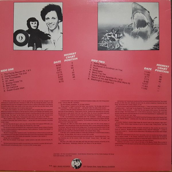 Dickie Goodmanサンプリング以前のサンプル手法、ブレイクインを生み出した伝説のパロディスト、ディッキーグッドマンは50年代から数あるヒット曲をぶった切ってブレイクイン! これは50〜80年代の全活動期間を俯瞰できるお得な編集盤。代表作 The Flying Saucer、Mr. Jaws から、マイナー作 Radio Russia、Return of the Jedi Returns (スターウォーズ) まで。ライノ センスなジャケットはハンナ=バーベラ出身の Scott Shaw。 #16881