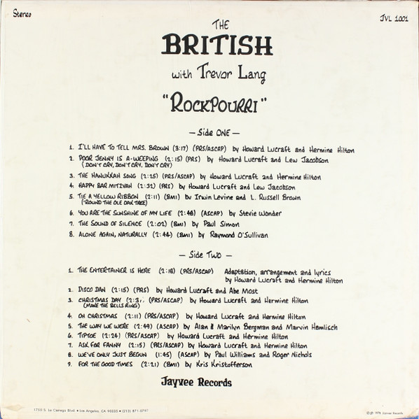 謎多きアルバム。17曲中10曲はBBCで活躍したジャズ作曲家Howard Lucraftのカバーで、そのために作られたアルバムのような気もするのですが、そのほかの7曲の選曲に注目。ロジャニコ「We've Only Just Begun」や「Alone Again, Naturally」「Sound of Silence」「追憶」など、全体的にとてもソフトなボーカルが魅力的です。なぜか途中まで歌ってあとはインストになります。演奏は全体的にとてもグルーヴィーなのになぜかバンジョーが入ってくるのが特徴的で新鮮です。