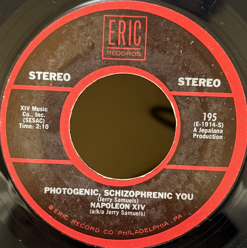 Napoleon XIVナポレオン14世ことJerrold Samuels の66年に間違って?全米3位にチャートインしてしまった名ノヴェルティ・ソング。テープ操作で音グニャグニャ〜。この76年のUS版ではB面はA面の逆回転バージョンではなく、アルバム収録のひねくれポップな別曲が収められている。リアルピープルかと思いきやJerroldはサミーデイヴィスJrのヒット曲なども書いている才人かつプロデューサー。ただやはりどこか病んでいた部分はあったようで、録音から50年後に発表された2ndアルバムは歌詞の内容があまりにエログロすぎてワーナーからリリースを拒否された経緯もあったりする。試聴はB面から先に収録してます。 #16863