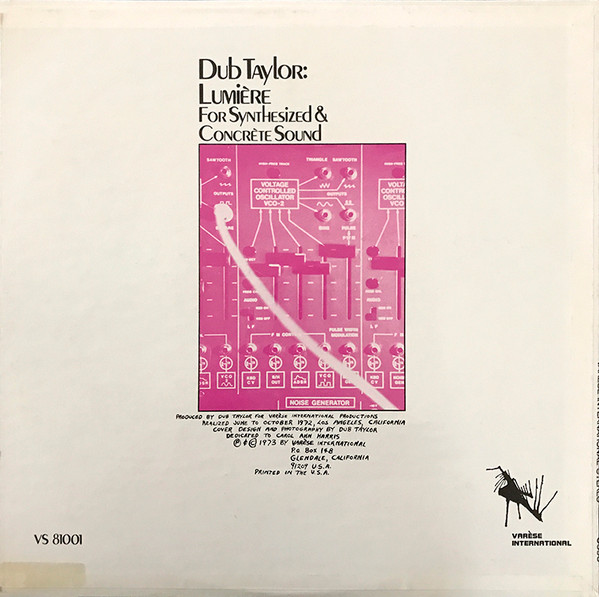 Original Blue Wax。Experimentalアルバムの歴史的大傑作アルバム。カリフォルニアはバーバンク生まれの電子音楽家ダブ・テイラー。かのシュトックハウゼンの元で学んだ彼が共同出資しているレーベルVarèse Internationalからリリースした唯一の作品。LPの両面にわたって繰り広げられるアープシンセサイザーと自然音、スポークンなどのサウンドコラージュ。大傑作。