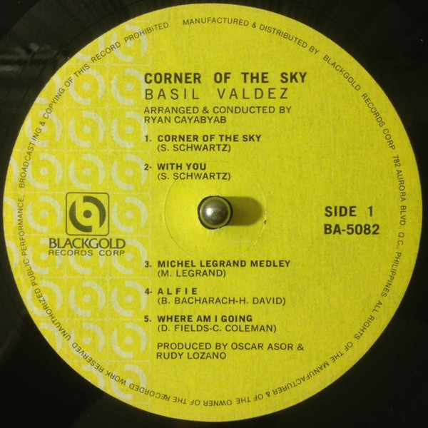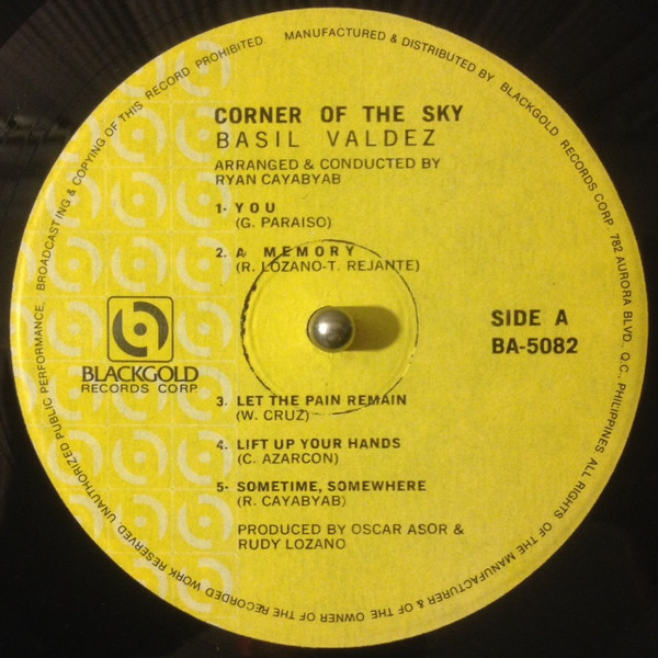 フィリピン・オリジナル。全体的にチリパチしますがフィリピン版としては良い方です。バジル・ヴァルデスはフィリピンの有名なバラード歌手です。1960年代にフォークシンガーとしてキャリアをスタートした彼は、1972年にCircus Bandに参加。Circus Band 解散後はソロ歌手としてたくさんのアルバムやシングルを発表し、現在も活躍しています。このアルバムはバジルのソロ4作めにして大ヒットアルバム。現代でも歌い継がれるOPM名バラードのA1 "You" や彼の代表作である"Lift up your hands"を収録。アレンジはレジェンドRyan Cayabyab。疾走感が魅力のタイトル曲"Corner Of The Sky"リハモ全開名アレンジの"Alfie"カバーなどレコメンド。