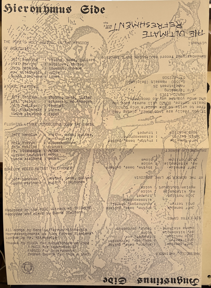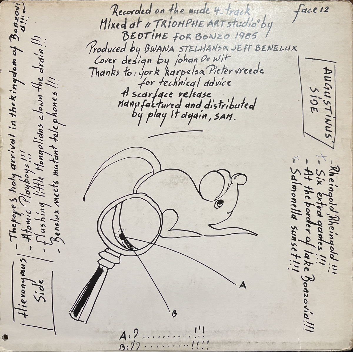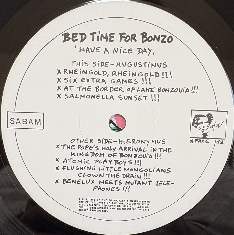 Bedtime For Bonzoベルギーのポストパンク・アヴァンギャルドバンド。Pop Groupがさらに屈折したような強烈なパンク・ファンク(ドラムはデジタルドラムマシンの丁寧なプログラム)にエレクトロニクスやテープ操作を扱うBwana StelhansことJos Spelmansの変態音響が被さる、ポストパンクの一つの到達点とも言える作品。 #16773