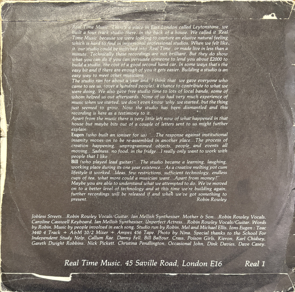 Real Time Musicこのシングルを説明する言葉が簡単に見つからないのだが、スピリットはアシッドフォーク、サウンドはアンビエント、エクスペリメンタルフォークという感じか。その後の活動が見当たらない謎の人物Caroline Casswellと、シンセサイザー担当のIan Mellishによるドープすぎる3曲を収録。 #17005