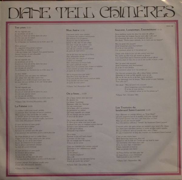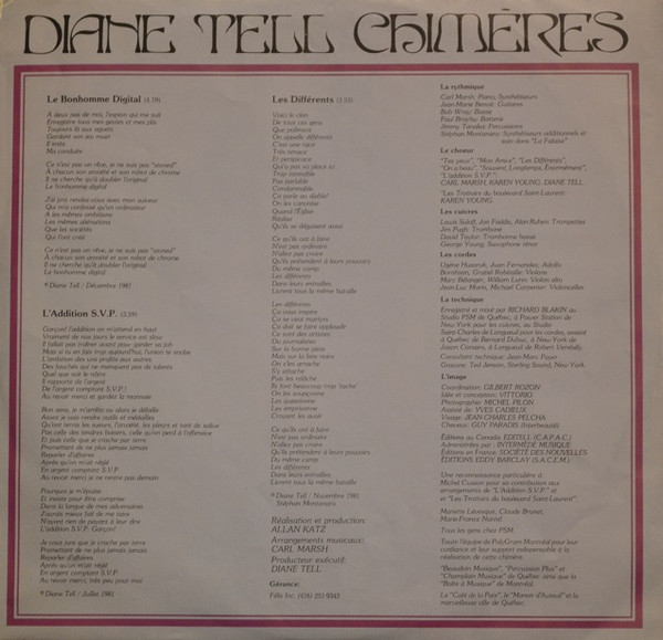 Diane Tellケベックの才色兼備なコンテンポラリーSSW、Diane Tellの5thアルバム。77年衝撃のデビューから5年経過し、さらに洗練が進んだジャズポップスは、現在のネオソウルにも直結するようなモダンさを持っています。 #17028