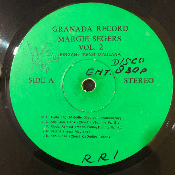 Margie Segers現在も現役で活躍するインドネシアを代表するヴォーカリスト、マーギー・セガーズ。彼女の5枚目のアルバムとしてカセットのみでリリースされた本作の放送局用にごく少数作られたウルトラレアなレコードです。Irene Maulanaをアレンジャーに迎え、ミラクルなシティポップやジャズダンサーを収録。ジャカルタシティポップのマジックをぜひ聞いてみてください。もともとジャケなしなので、カセット版のジャケのコピーを添付しました。 #16421