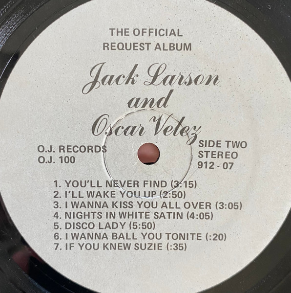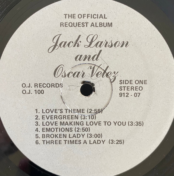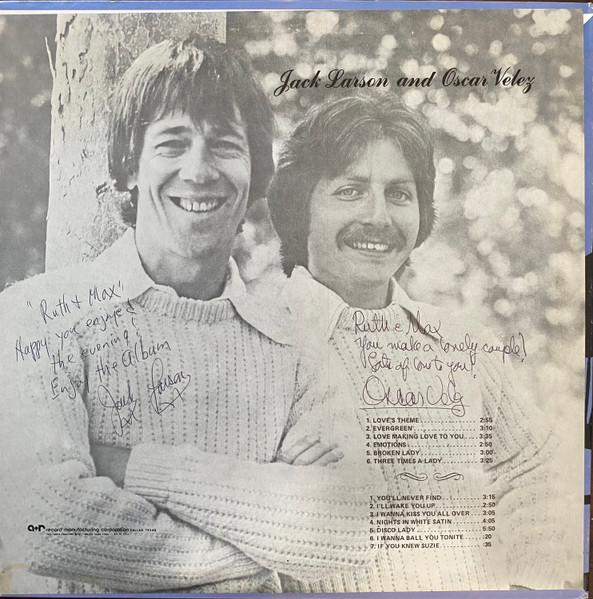 Jack Larson And Oscar Velez俳優、歌手のJack LarsonとOscar Velezのデュオなんですが、Velezさんの素性がまったくわかりません。ただシンプルな構成と確かな演奏力、ボーカルなど高い評価を受けプレミアの付いているラウンジ盤です。中でもBee Geesが書き下ろしたSamantha Sangのヒット曲「Emotions」カバーの飾らないアレンジは素晴らしいです。 #16763