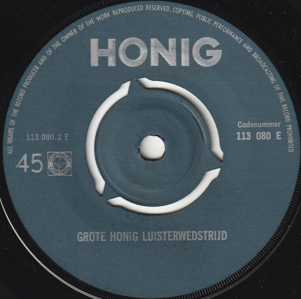 ジョンモアスープを2箱買うともらえるショップオーナーからのプレゼントレコード。A面はオランダの人気コメディアンDorusの効果音入りのコメディ楽曲が2曲(これがなかなかいい曲!)、B面はゲームになっていて、スリーブの裏面にルールが書かれているというマルチメディア戦略になっております。