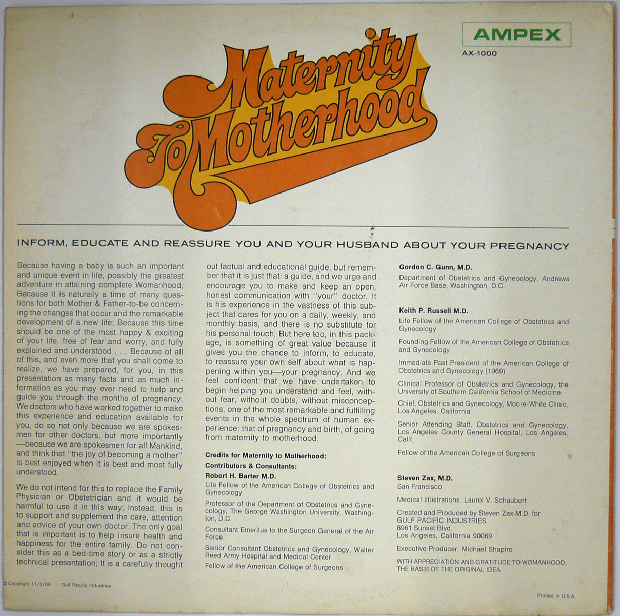 妊娠とは何か、最初の3ヶ月、妊娠中の食事から、いよいよ出産に至るまで、妊娠に関しての注意点をいい声のおっさんが語り続ける、お節介なレコード。内ジャケに小学生でもワクワクしないようなエロ図版あり。