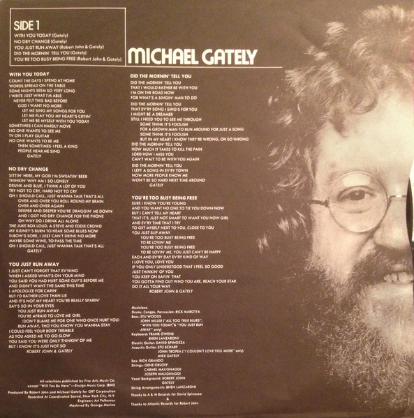 Michael Gatelyソングライターとして活躍し、アル・クーパーのプロデュースでリリースされた1stに続き、相方ロバート・ジョンのプロデュースで制作された2nd.アルバム。髭面からはイメージできない繊細な歌声と切ないメロディやハーモニーがこれでもかと登場します。フォーク〜アメリカンロック、AORのいいところが詰まった好盤。39歳で逝去したためラストアルバムになりました。 genre = フォーク・SSW・AOR Folk, SSW, AOR