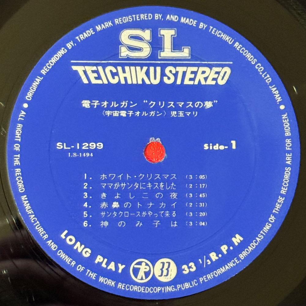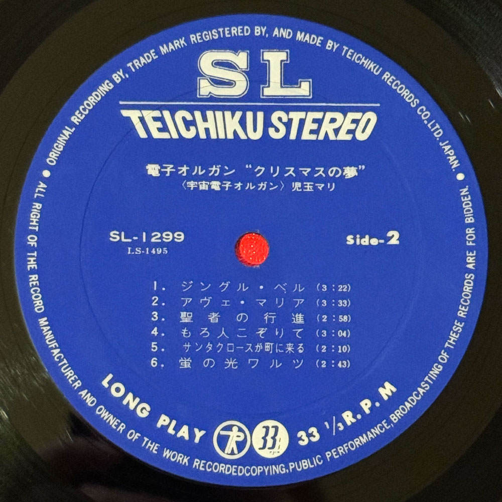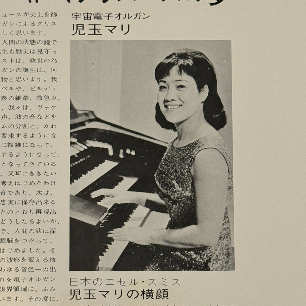 宇宙電子オルガン 児玉マリ日本のエセル・スミスこと児玉マリによるクリスマス曲集。児玉マリは昭和38年の第1回リサイタルを皮切りにテレビ.ラジオ、レコードで活躍、1966年夏にシカゴで行われたオルガンショーでは日本代表として演奏、エセルスミスをして「私に教えるものは何もない」と言わしめた。オルガンで鐘やオルゴールの音まで演奏しております。 #15950