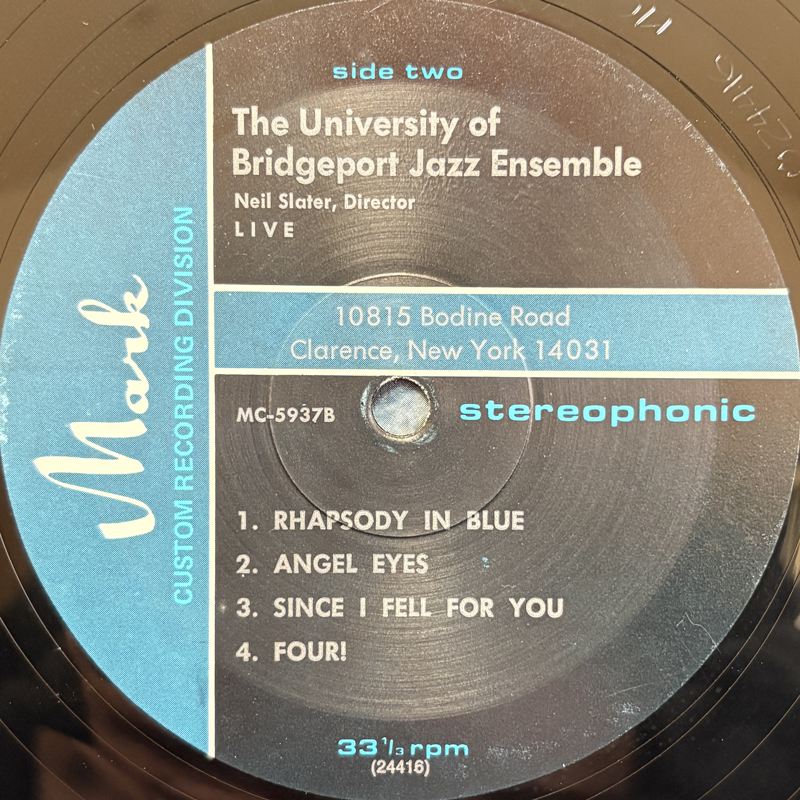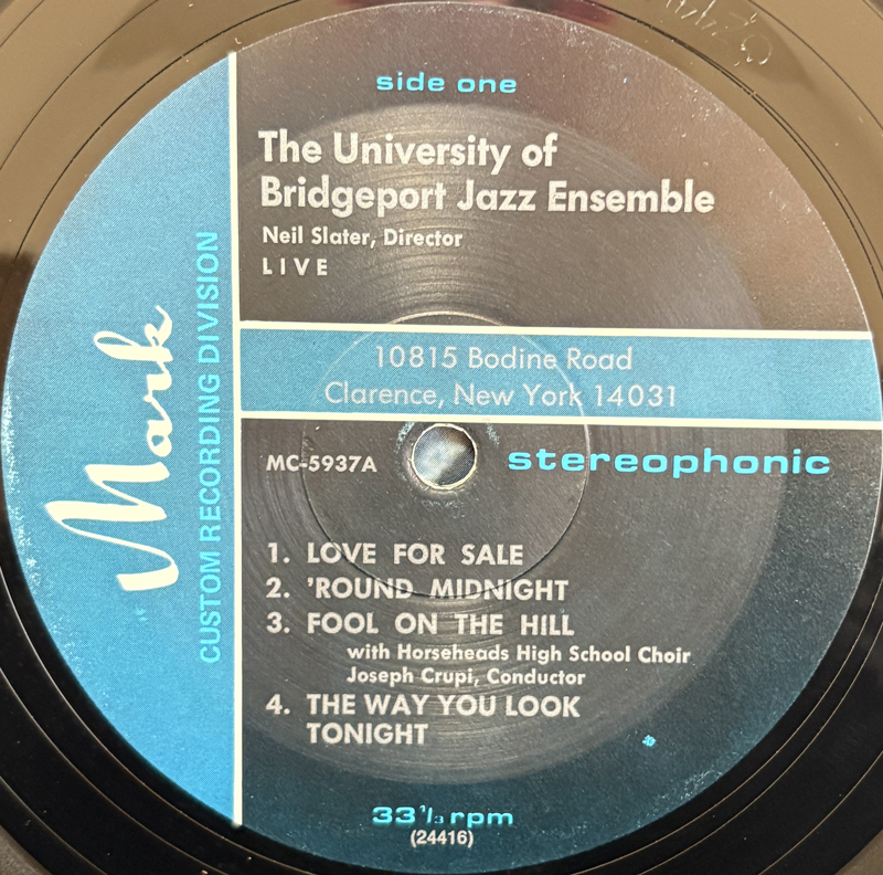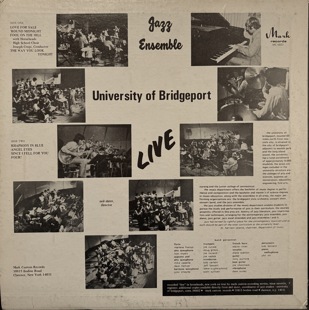 アメリカはコネチカット州のブリッジポート大学のジャズアンサンブルによるご機嫌なライブ盤。1970年代の終わり頃の収録かと思われます。"Love For Sale"や"Rhapsody In Blue"をアドリブも最高なグルーヴィーな演奏で。"Fool On The Hill"はホースヘッド高校のコーラスをフューチャー。"Angel Eyes"と"Since I Fell For You"は女性Vo.入りです。