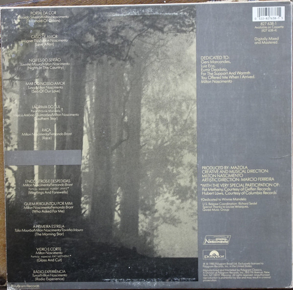 ブラジルの声とも言われたミルトン・ナシメント。Wagner Tiso、Hubert Laws、Pat Methenyなどが参加してヒットした85年作。AOR感とフュージョン、そしてミナスらしい浮遊感のあるコード感が混じり合った素晴らしい作品。