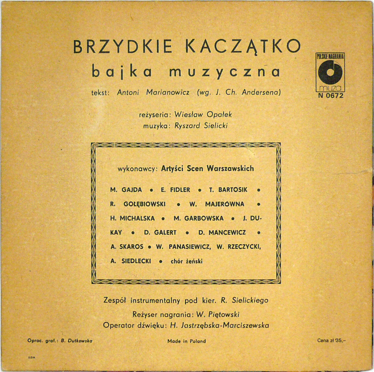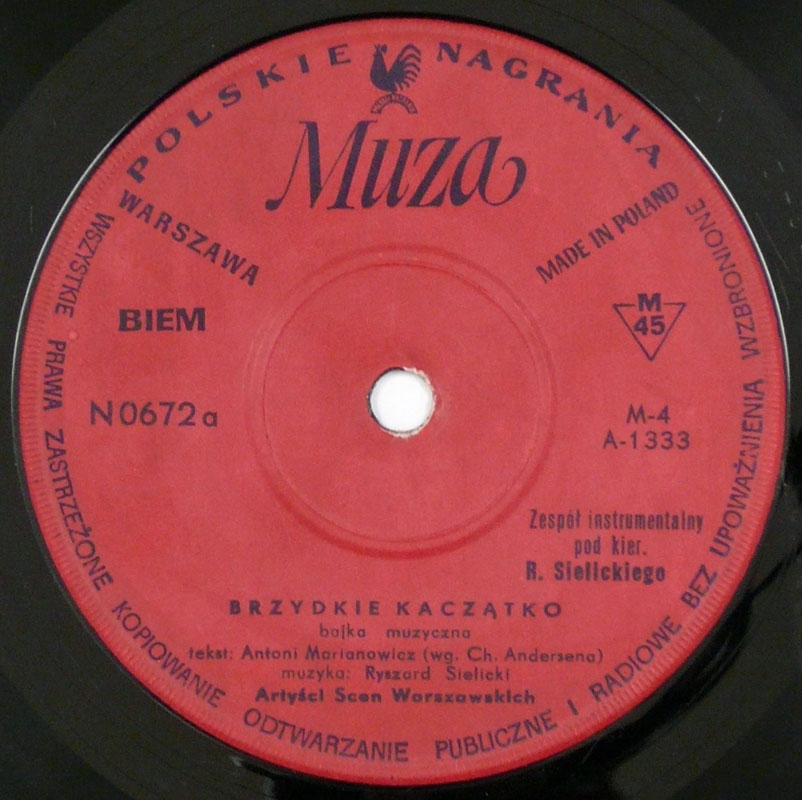 Children60年代? バードジャケ。アンデルセン童話 "みにくいアヒルの子" の子供向けドラマレコ。ポーランドの作家 Antoni Marianowicz による脚色で、歌やBGM付きの演出。音楽担当は Ryszard Sielicki。 #16699