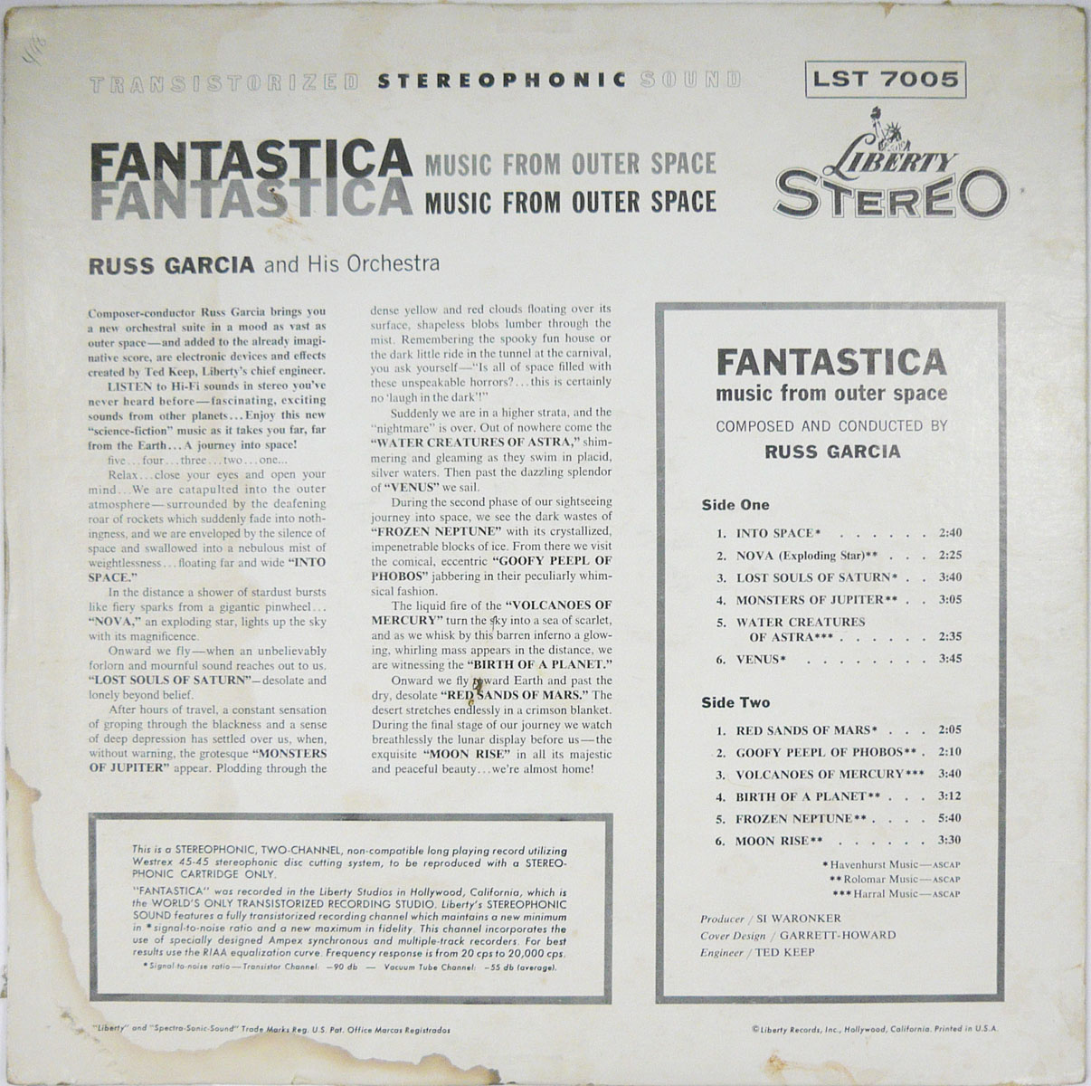Russ Garciaスペースエイジラウンジといえばまず挙げられるのがこの大名作!ガルシアの究極の妄想と言ってもいいエキゾミュージックと宇宙への憧憬の融合。味わい深いエフェクト処理が施されたオーケストラで描写される未だ見ぬ無重力の密林!我々はアポロより遥か前に既に宇宙に到達していたのですよ。 #16642