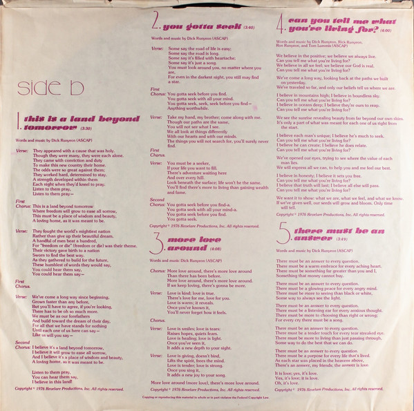 FreePeople名曲"No fear in love"収録の宗教ソフトロック名盤!さすがのTempoレーベル職人Paul Johnsonアレンジとハーモニーの完成度の高さにビックリ&大泣き必至よ。 genre = CCMソフトロック CCM Sunshine Pop