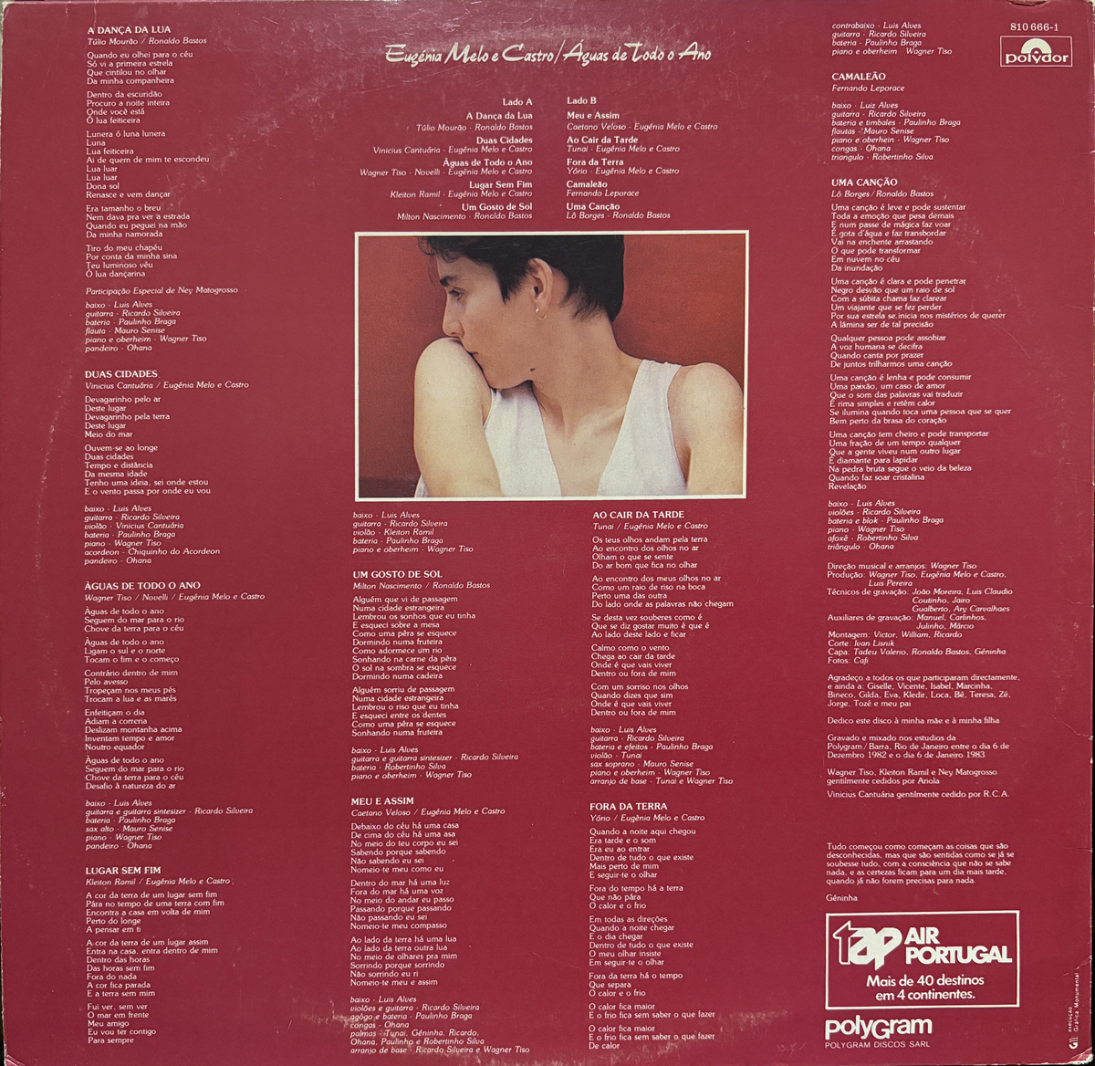Eugénia Melo e CastroポルトガルのSSW、女優。ポルトガルとブラジルの両方で活躍し、カエターノやミルトン・ナシメントなどMPB大物とも交流し、両国で数々の賞も受賞している彼女の、まだ若き頃のセカンドアルバムです。 genre = 欧州ジャズ・ポップス Europe Jazz, Pops