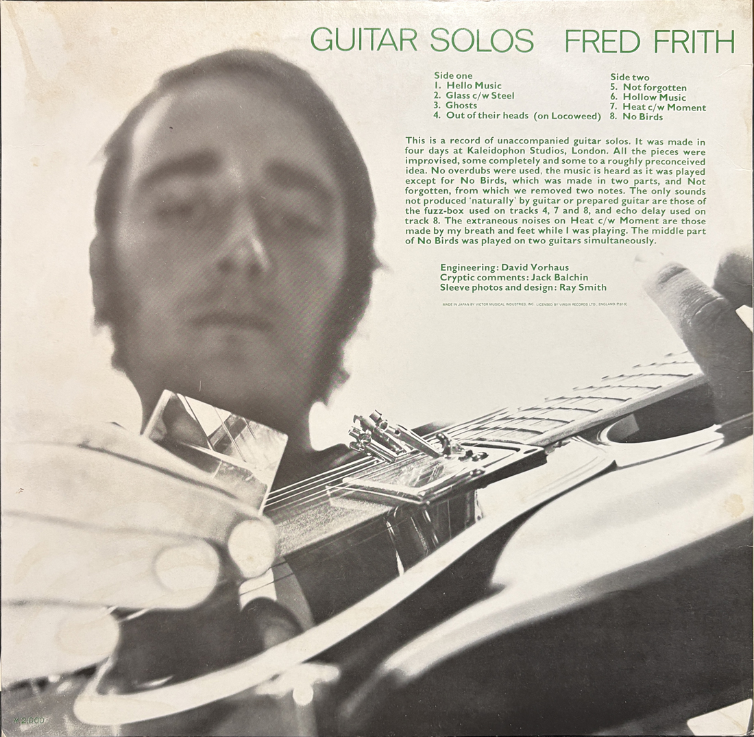 日本盤、ライナー付。1974年発表のFred Frithの記念すべきソロデビューアルバム。Henry Cow在籍中に発表された本作はギターのみで表現された、Frithの前衛性、実験精神、ユーモアが交錯する唯一無二のアルバム。A1の名曲 "Hello Music"ほか名盤の誉高いアルバムです。
