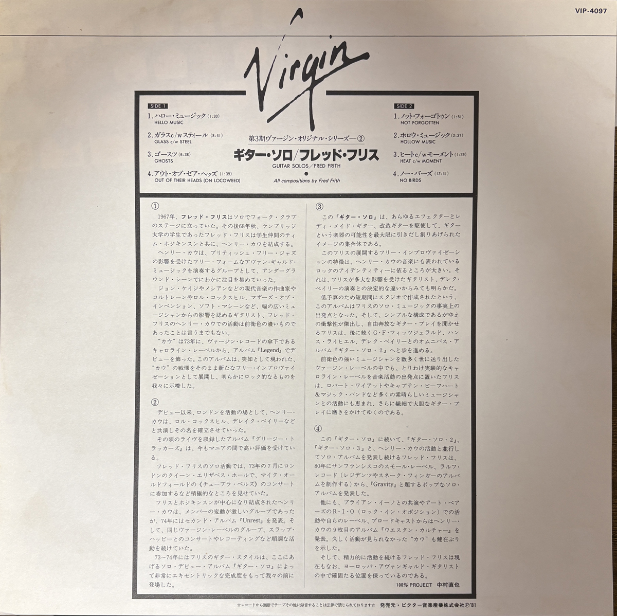 Virgin  VIP-4097  LP  Japan  1981
