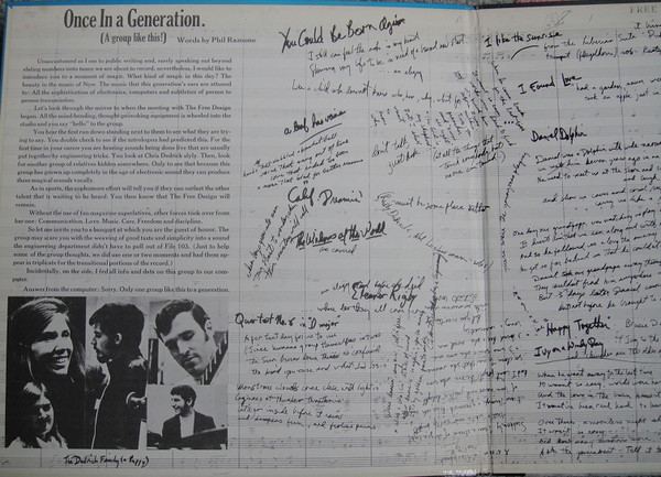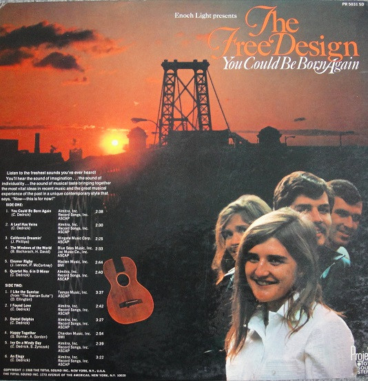 Free Design2nd。ソフトロック ベーシック名盤。Bacharach & David、Lennon & McCartney など名だたる作家のカバーも含みますが、やはり肝となる曲がオリジナルであることが、このグループの水準の高さを知らしめます。バッキングは当然 Command レーベル系のジャズ名手 Dick Hyman、Bill Lavorgna などなど。 genre = ソフトロック基本編 Sunshin Pop Well-known