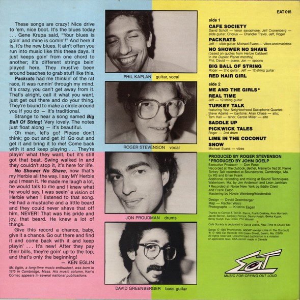 Men & Volts画家でもあり、老人との対話の口述記録の作品化でも知られる特異な経歴の持ち主であるDavid Greenbergerが79年に結成していたオルタナティヴロックバンドのデビュー作。彼はベースと作詞を担当。ビーフハートにも近い感触を持つプログレッシヴで自由な楽曲たちは、ギターのPhil Kaplanの才能によるところが大きい。とにかくポテンシャルが高く曲調に幅があるので、できれば最後までサンプル聴いてね。 genre = レコメン・アヴァンポップ Avan-Pop, RIO