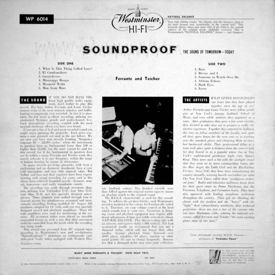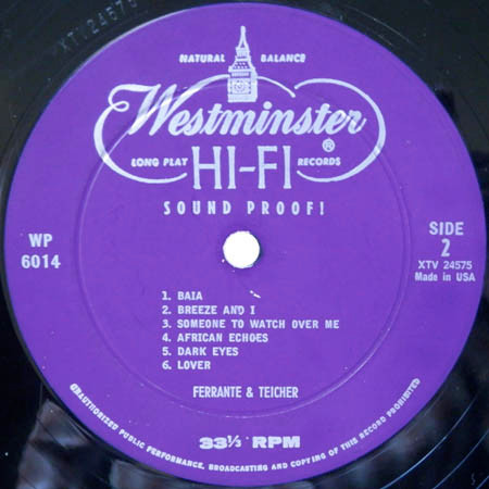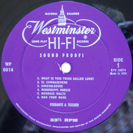 Ferrante and Teicherプリペアド ピアノの様々な音色と初期の電気エフェクトによる素晴らしいビンテージサウンド (発展しつつあった電気/電子音楽がアナログに先取りされている不思議)。ちょっとエレガントな雰囲気すら漂うスペースエイジ ラウンジの名品です。ジャケは "禁断の惑星" から。 #16644