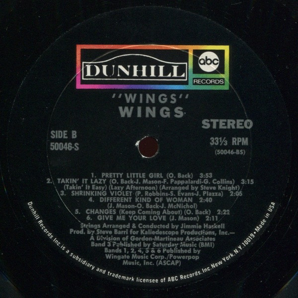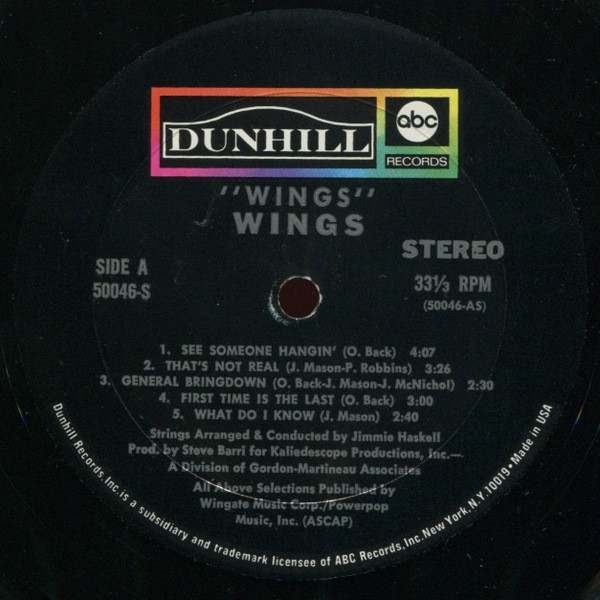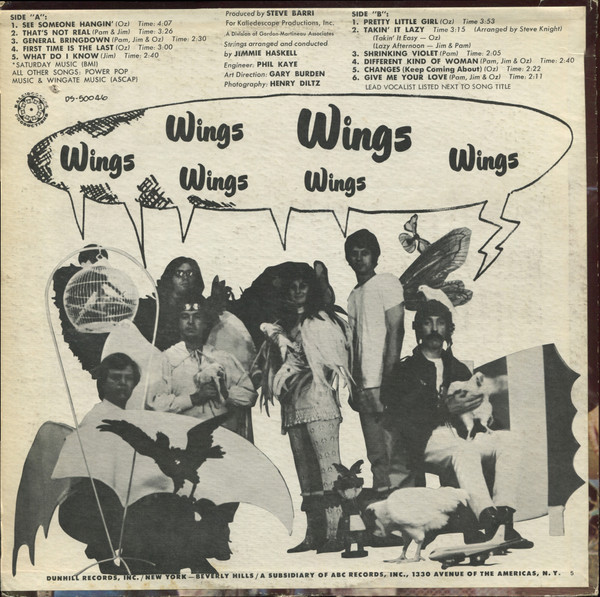 WingsもちろんあのWingsとは別バンド。でもただのマイナーバンドというわけではなく、Spanky and Our GangやJefferson AirplaneのメンバーやPaul Simonの弟がいたりと、わりと華々しいグループでもあり、Sly & the Family Stoneの前座を務めたりもしていた。サウンドはポップサイケ色が強く、期待もされていたが、このアルバム一枚だけリリースして解散してしまった。 #16673