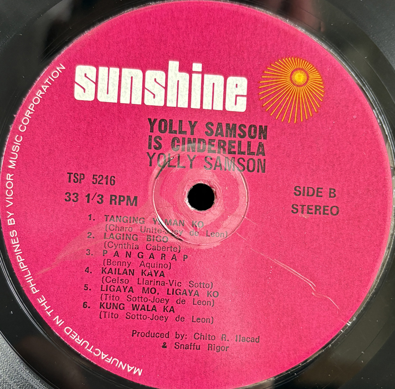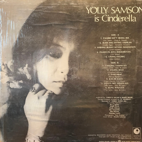 Yolly Samson97年に癌のため41歳で夭折したCinderellaのヴォーカリストYolly Samsonの唯一のソロアルバム。バックはCinderellaの面子がつとめているので、実質的にはCinderellaのアルバムといってもいい感じ。ただ、ストリングスが大胆に使われた曲などもあって、70年代に数多くのフィリピンの男性の心をわしづかみにした彼女のスウィートな歌声をより引き立てている。ヒットした"Pag-ibig ko'y Ibang-iba"を始め甘い名曲ぞろいで、聞いていて切なくなってくる。 #16686